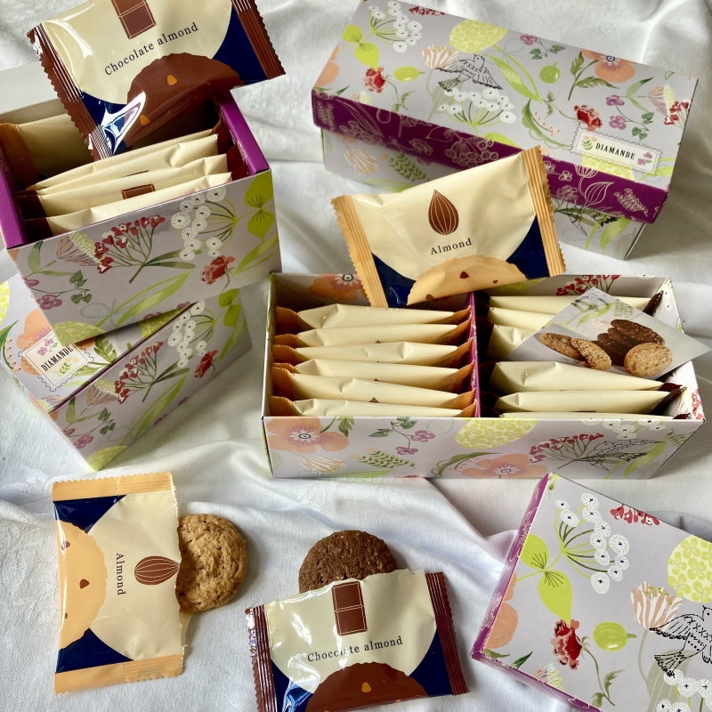 アーモンドの香ばしさと、チョコアーモンドのほどよい甘さのバランスも絶妙。チョコが苦手な方へのバレンタインにもおすすめです。