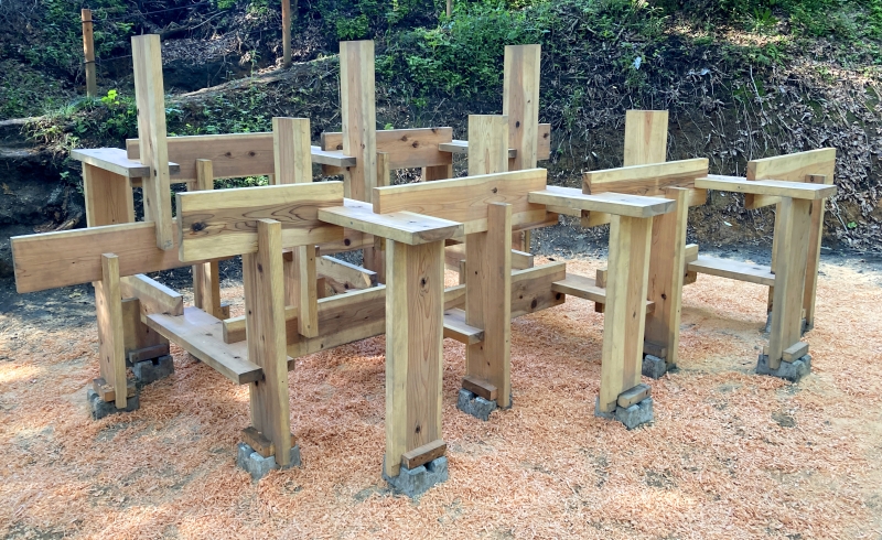 学生たちは日々の研究で培った知識と技術を、この「Wood Structure Artの森」プロジェクトでも存分に発揮しました。