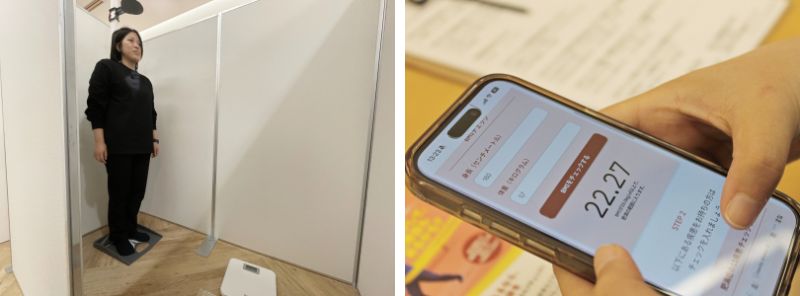 会場を訪れた50代女性にお話をうかがってみました。当日は、イオンモールでのお買い物中にこのイベントを見かけて立ち寄ったそうです。セルフチェックではBMI値が適正範囲内という結果にホッとしている様子でした。