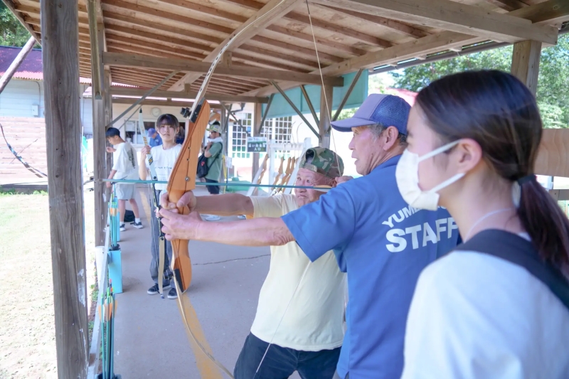 また、牧場内では、動物とのふれあい体験や乳搾り、芝すべり、アーチェリーなど、多彩なアクティビティが行われます。参加者はグループごとに「何をやりたいか」を自分たちで話し合い、自由に行動します。そこでは、障がいの有無に関係なく、「できることを一緒に楽しむ」姿が自然に生まれます。