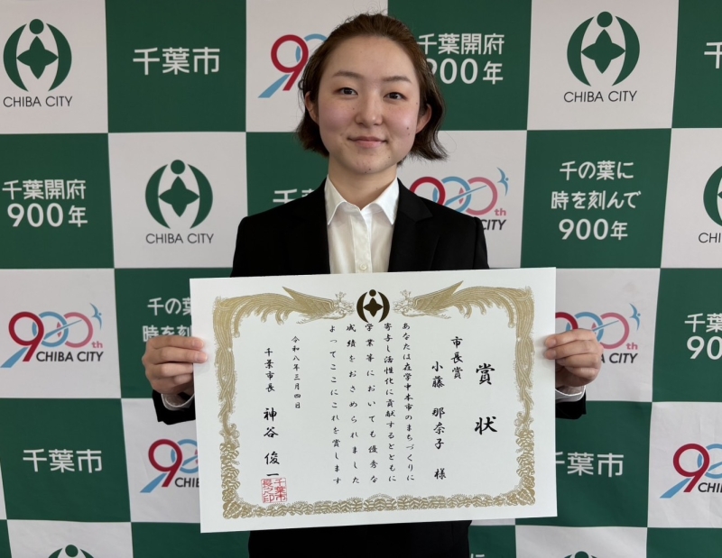 こうした活動が評価され、小藤さんは「令和7年度 千葉市大学市長賞」を受賞しました。授賞式は2026年3月4日、千葉市役所で行われ、神谷俊一市長から賞状が授与されました。
