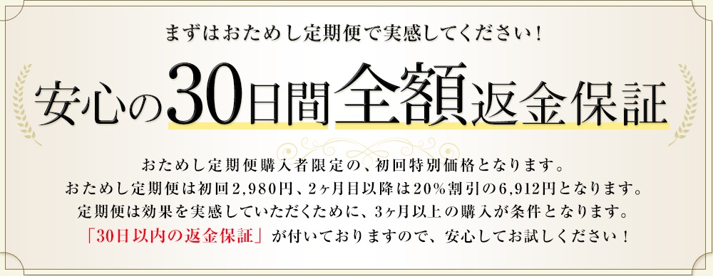 通常価格8,640円(税込)のところ、初回は約66%OFFで購入可能。 - 30日間の全額返金保証
