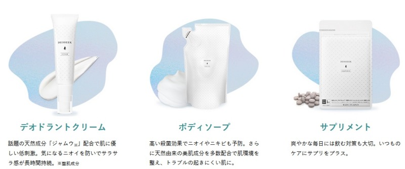 デオシークはクリームだけでなく、ボディソープとサプリも展開しているのが特徴です。