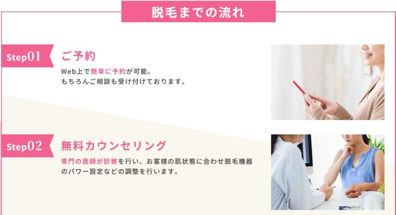 「わき脱毛が3分ほどで終わる」「1回の来院で全身を短時間で済ませられる」など、仕事帰りや買い物ついでに通える手軽さが好評です。 - 医師がいる安心感