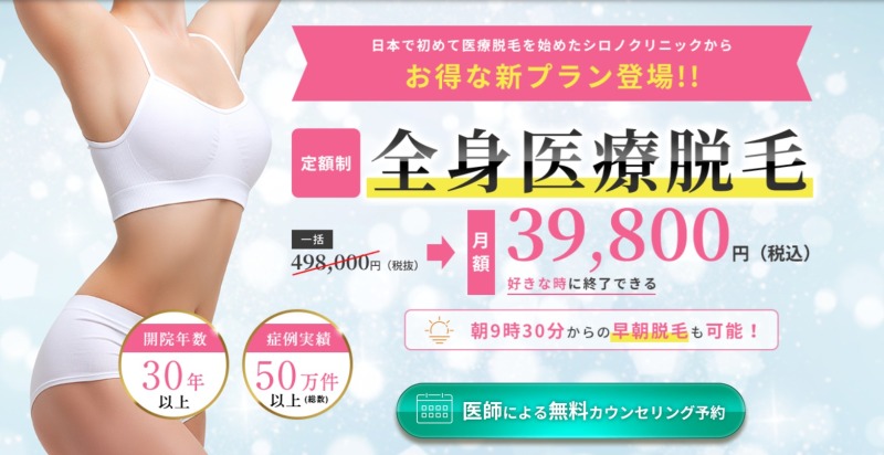 シロノクリニックは、日本で初めて医療脱毛を導入したクリニックとして、長年にわたり多くの人に選ばれてきました。口コミでは「料金は高め」という声もありますが、実際には効果の早さ・医師によるサポート・豊富な症例実績といった安心感が評価されています。