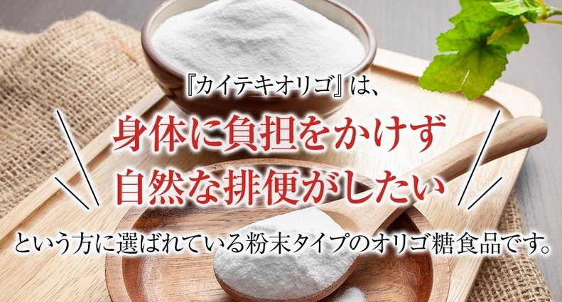 「カイテキオリゴ」は、便秘やお通じの悩みを抱える人のために開発されたオリゴ糖食品です。