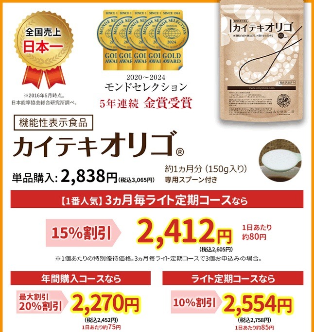 カイテキオリゴは通販サイトでも販売されていますが、最もお得で安心なのは公式サイトからの購入です。