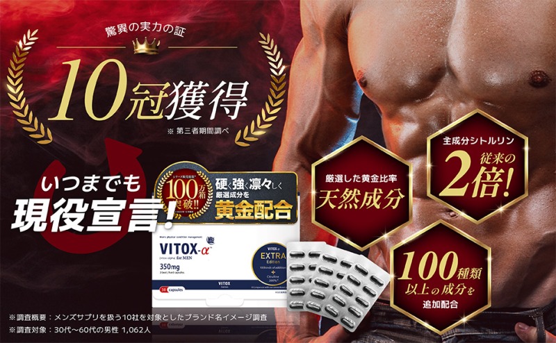 男性の活力を支えるサプリとして注目を集めている「ヴィトックスα(VITOX-α)」。