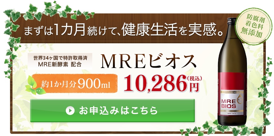 MREビオスは、健康志向の人を中心に口コミで注目が集まっている酵素ドリンクです。
