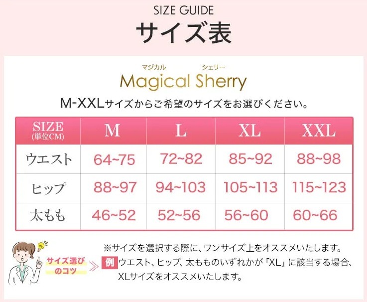 無理のないサイズで正しく履くことで、マジカルシェリーの補整力をしっかり実感できるはずです。