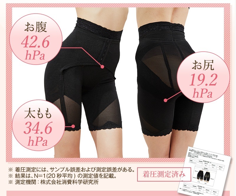 このように、お腹・腰・ヒップを一体的にサポートする構造がスタイルアップをサポートします。