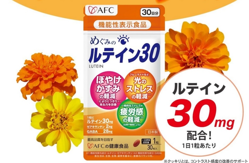 ルテイン30mg、ゼアキサンチン2mg、GABA28mgを配合し、