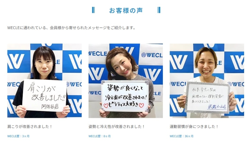 口コミを見ると、WECLE(ウィークル)は「続けられるフィットネス」を探している人から高い支持を得ています。
