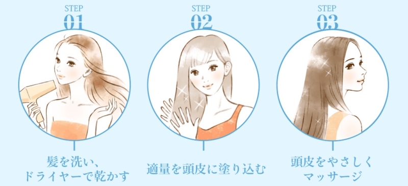 頭皮が濡れている状態では成分がなじみにくいため、しっかり乾かしてから使用します。