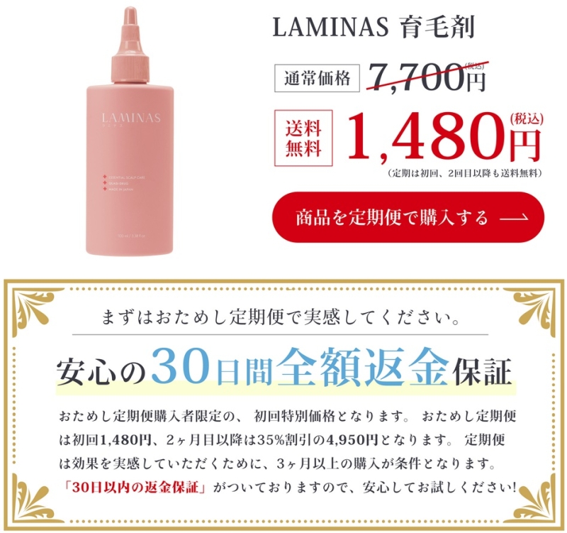 ラミナスは、「抜け毛を防ぐだけでなく、髪のボリュームを取り戻す」ことを目的に開発された育毛剤です。