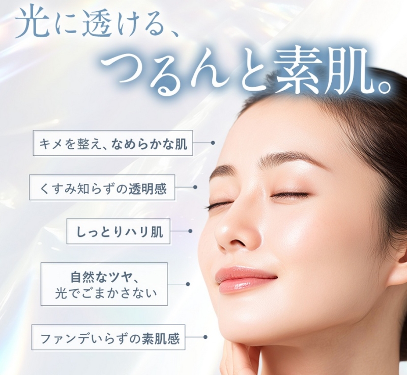 紫外線やブルーライトなどの“光ストレス”を味方に変え、乾燥やくすみを防ぎながら、ツヤと透明感のある素肌を演出します。