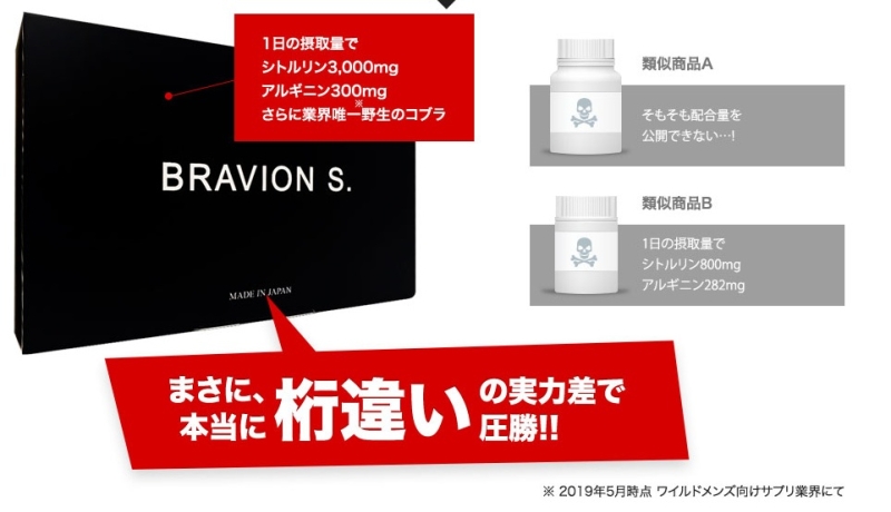ブラビオンSは、100倍濃縮L-シトルリンを採用した高品質メンズサプリ。