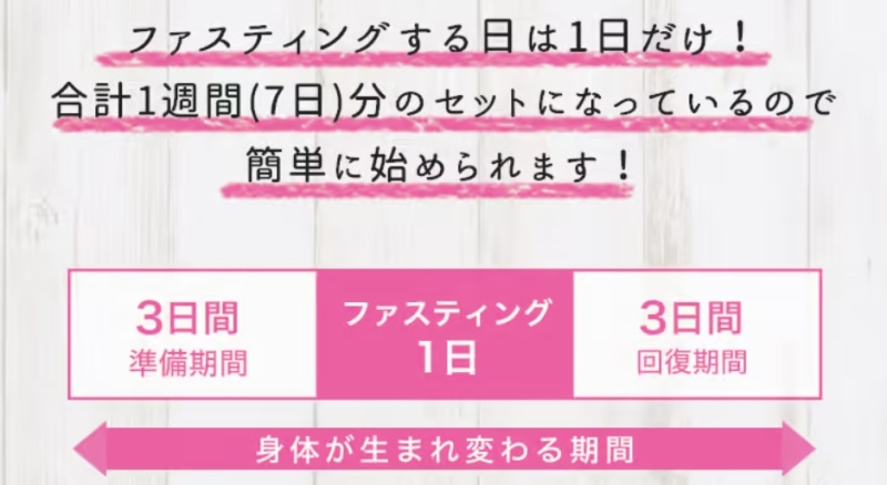 名前の通りたった1日で体をリセットできるファスティングプログラムです。