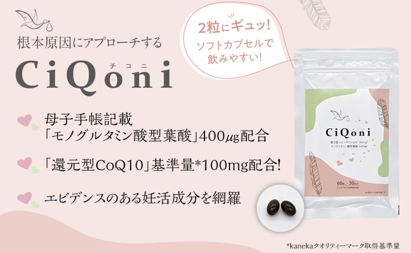 チコニ(CiQoni)は、そんな「妊活期のトータルケア」を目的に開発されたサプリメントです。
