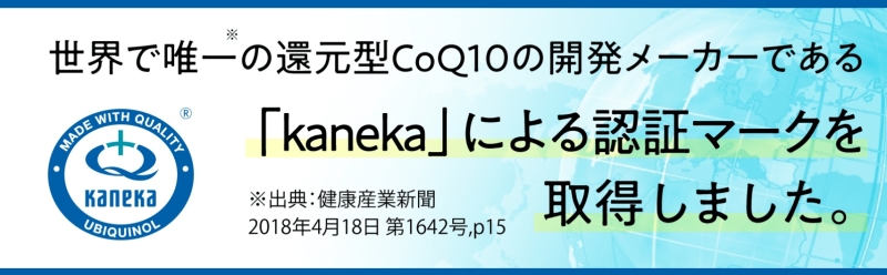 世界で唯一の還元型CoQ10メーカー「Kaneka」の認証を受けた成分。