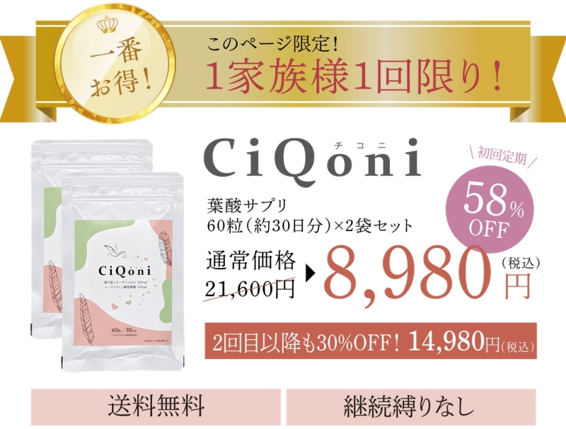 チコニ(CiQoni)妊活サプリの口コミと評判 妊活葉酸×還元型CoQ10の実力を検証