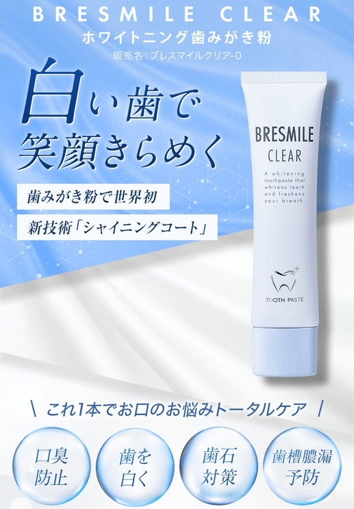 「歯の黄ばみが気になる」「マスクを外す機会が増えて口臭が心配」──そんな悩みを抱える方の間で話題になっているのが、薬用ホワイトニング歯みがき粉『ブレスマイルクリア』です。