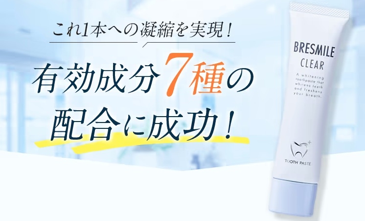 ブレスマイルクリアは、医薬部外品として認可された7種の有効成分を配合しています。