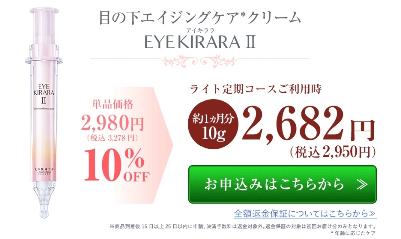 乳液・クリームを使う場合は、化粧水 → アイキララII → 乳液(またはクリーム) の順番がベストです。