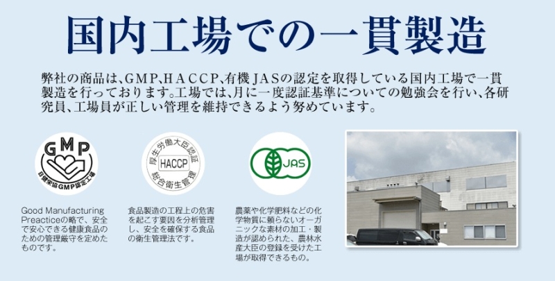 - 素材100%+国内工場製造(GMP・HACCP取得) → 安心感あり