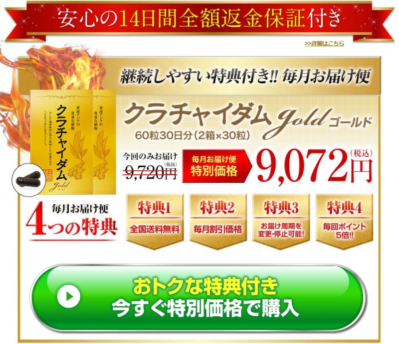 この記事では、クラチャイダムゴールドの口コミ・成分・安全性をわかりやすく紹介しつつ、公式サイトで購入するメリットまで丁寧に解説します。購入前の判断材料として、ぜひ読んでみてください。![]()