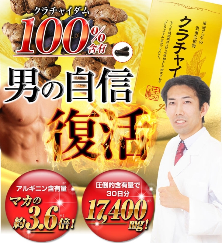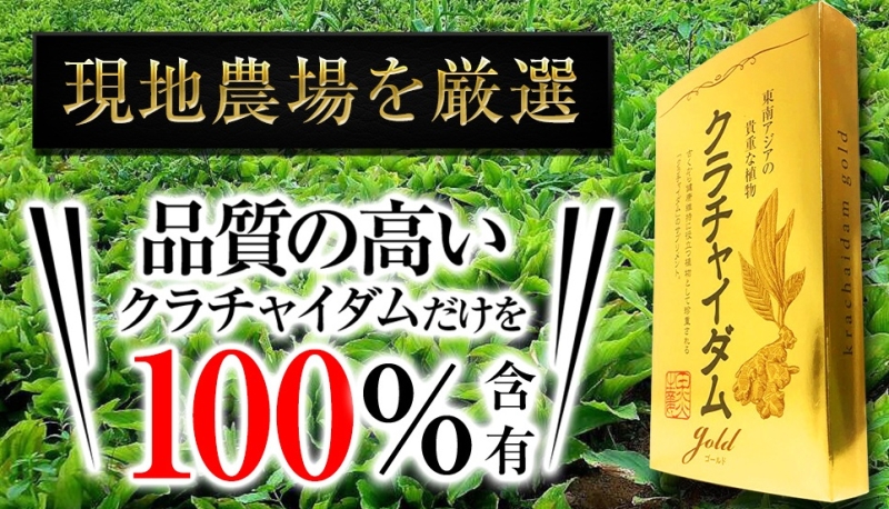 「クラチャイダムゴールド」は、タイ原産のクラチャイダムを 100%素材 として使用した男性向けサプリです。
