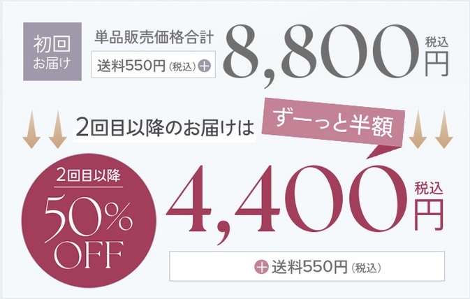 ② 初めての人でも続けやすい“2回目以降ずっと半額”が使えるのは公式限定