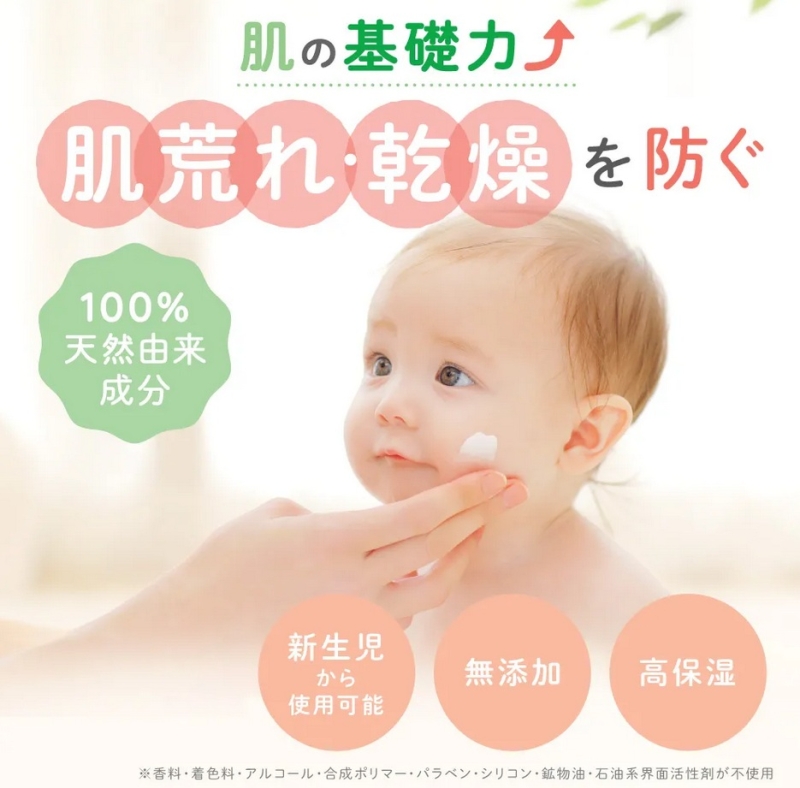 赤ちゃんの肌は大人よりも水分を保つ力が弱く、乾燥しやすい状態にあります。そのため、ただ保湿成分を配合するのではなく、「赤ちゃんの肌に不足しがちな成分を補う」という考え方をもとに設計されています。