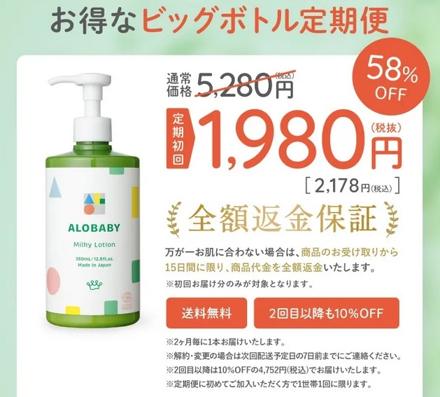 アロベビー ミルクローションの定期便は、日常使いを前提にした条件が整えられています。