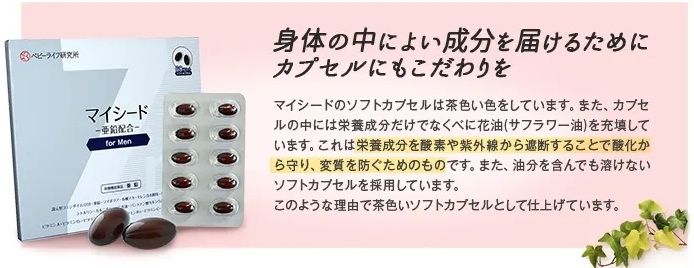 マイシードには、1日あたり8.8mgの亜鉛が配合されており、これは1日の推奨量をしっかり満たす設計です。
