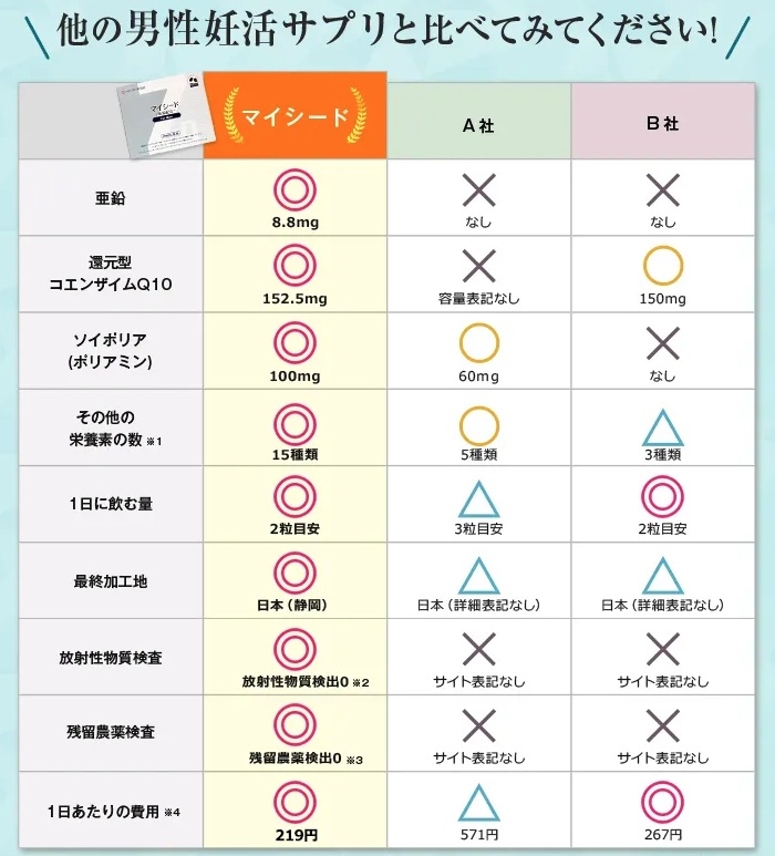 マイシードと他の男性妊活サプリを比べて見えてくる違い