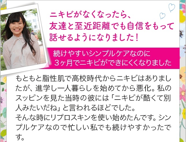 リプロスキンを日常のニキビ跡ケアとして取り入れやすくなります。