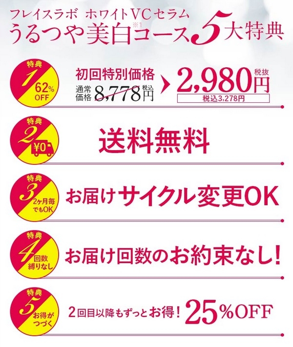 ホワイトVCセラムは、公式通販限定で「うるつや美白コース」という特別なキャンペーンが用意されています。