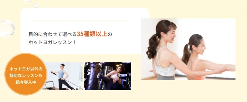 普段あまり汗をかかない人でもしっかり発汗でき、レッスン後は気分がすっきりしたと感じる方が多いようです。 - プログラムの種類が多く飽きにくい