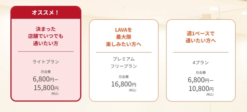 ホットヨガ LAVA(ラバ)は、月額制を基本とした料金体系です。