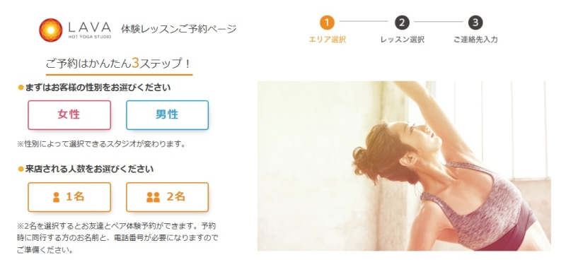 ホットヨガ LAVA(ラバ)の体験レッスンは、Webから簡単に申し込めます。