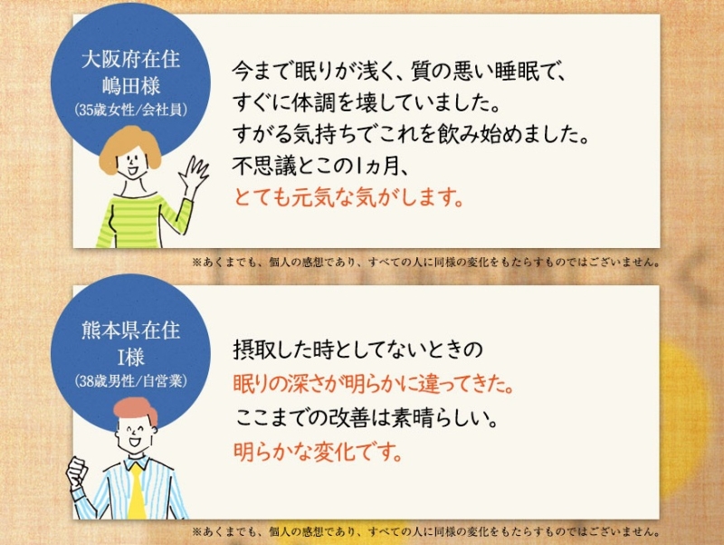サプリとして飲みやすく、就寝前のルーティンに組み込みやすい点が評価されています。 - 朝の目覚めが以前よりすっきり感じられるようになった