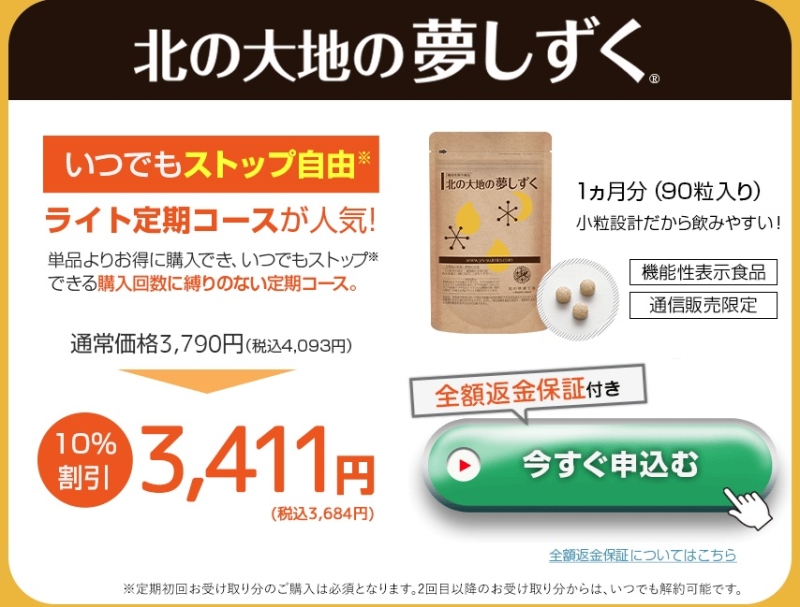 その点、北の大地の夢しずくは、公式サイトからであれば価格面や保証制度が整っており、
