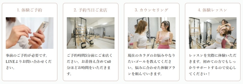 ピラティスミーでは、入会を強く前提としたものではなく、スタジオやレッスン内容が自分に合っているかを確かめるための体験レッスンが用意されています。
