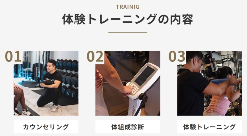 予約後は、案内に従って来店すれば体験トレーニングを受けられます。