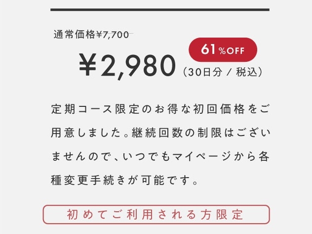 公式サイトでは、初めて購入する人向けに特別な条件が用意されています。
