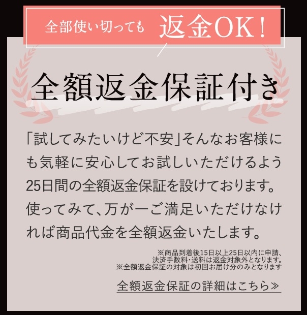実際に使ってみて、万が一満足できなかった場合でも、条件を満たせば商品代金が返金される仕組みです。