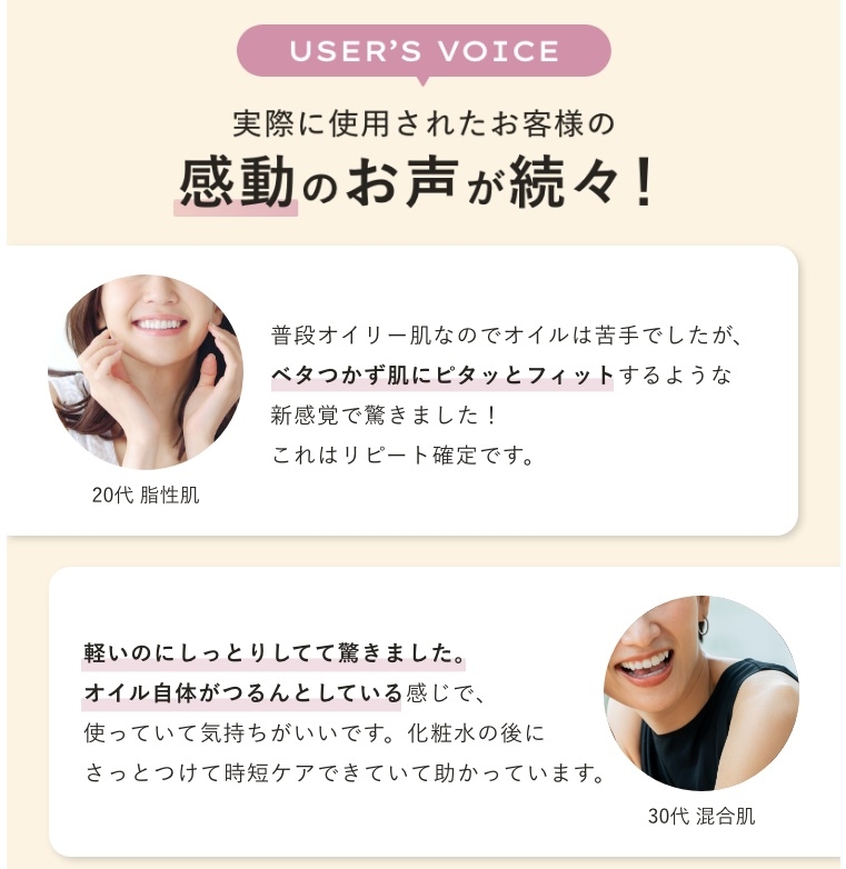 その一方で、口コミを見ても分かる通り、肌のコンディションを整えたい方や、日々のスキンケアを丁寧に続けたい方から長く支持されているフェイスオイルです。