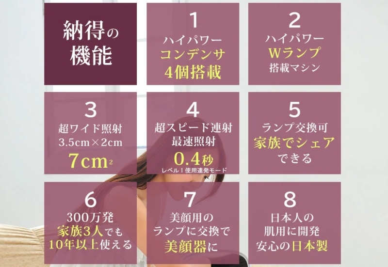 照射回数が多く設定されている点も、家庭用として評価されている理由の一つです。