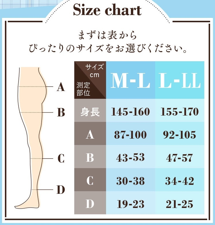 ベルミス レギンスは、主に以下の2サイズ展開となっています。